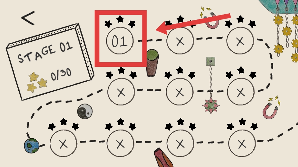 在关卡选择界面,点击那个标有“01”且带有星星的圆形图标,就能进入第一关开始挑战。
