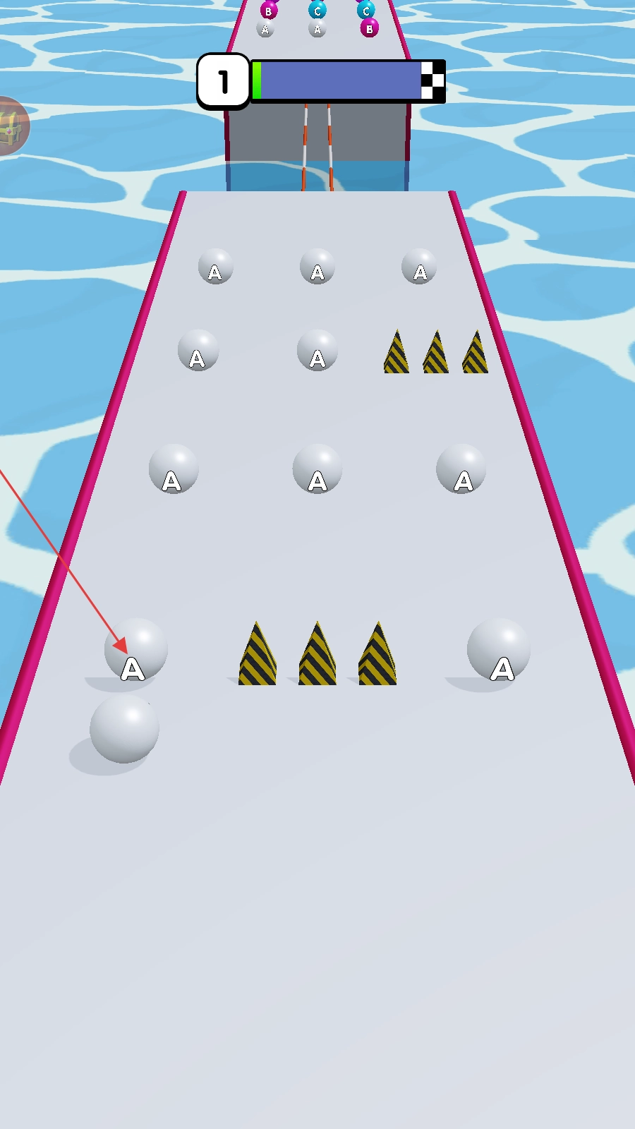 滑动屏幕来操控字母球躲避尖刺,优先撞击相同字母的球就能实现升级。