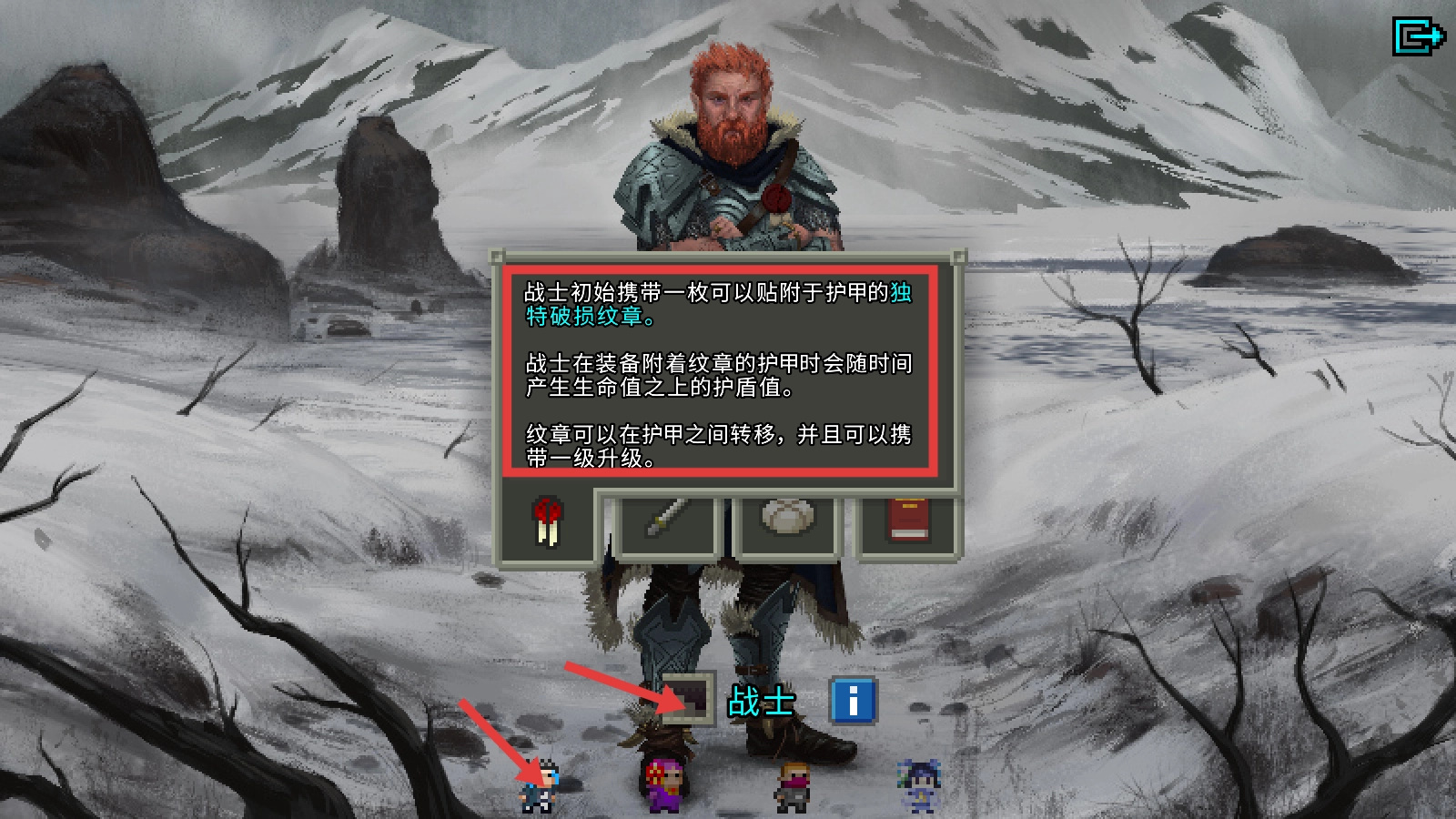 选择【战士】职业,初始会携带【破损纹章】道具。该纹章具备可转移的特性,且自带一级升级效果,当角色装备护甲时能触发护盾生成机制。我们可以借助这一特性来增强角色的生存能力。