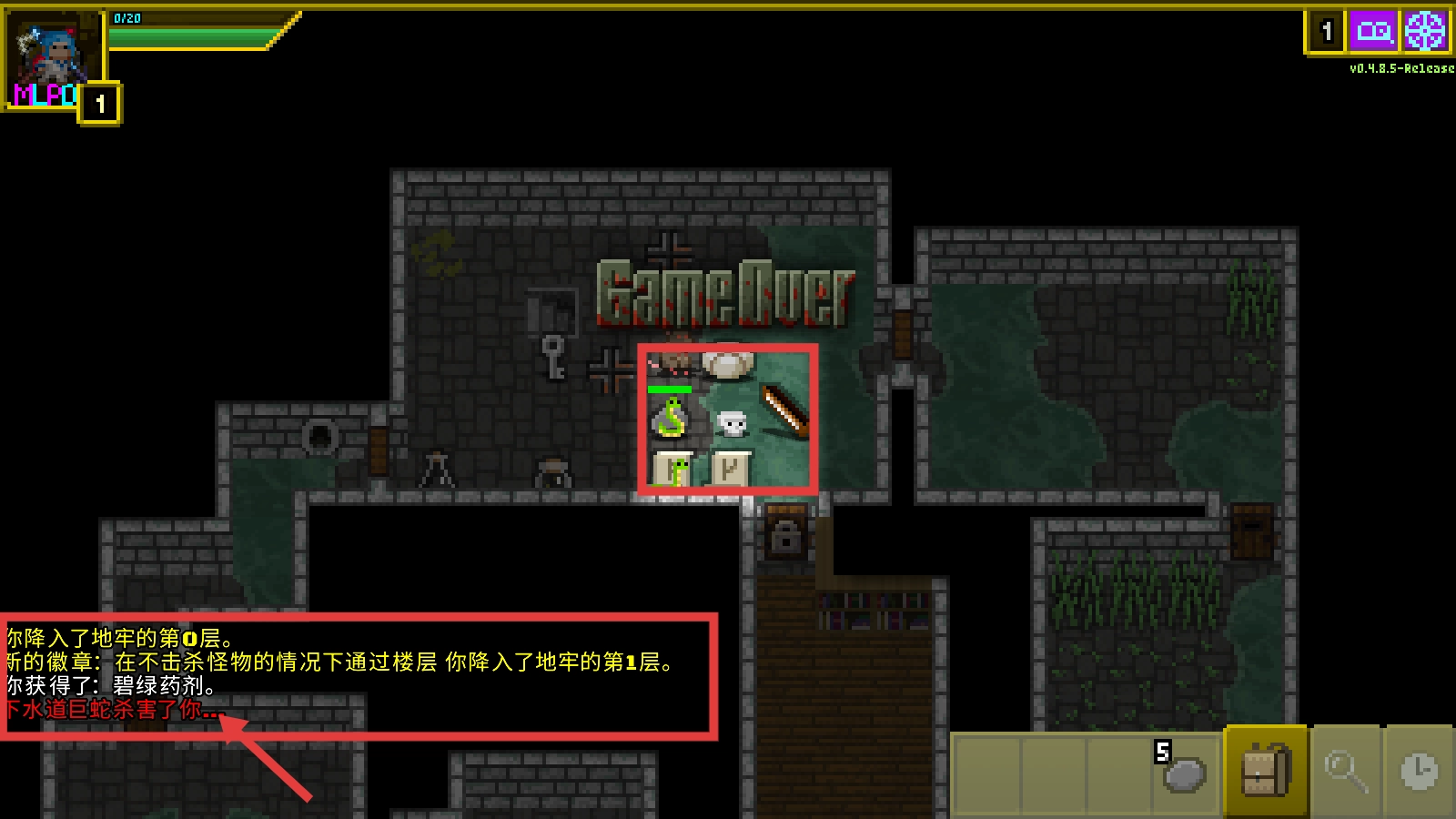 遇到【下水道巨蛇】要小心,它伤害很高,很容易导致游戏结束,探索的时候最好先躲开厉害的怪物,确保能活下去。