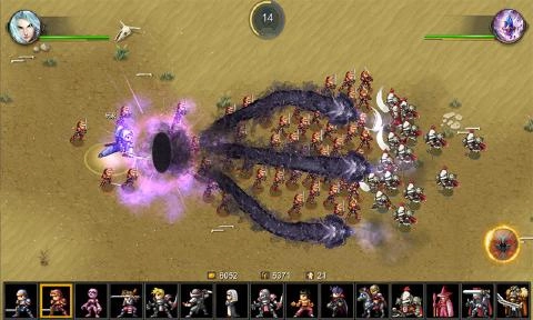 面对敌方近战单位密集的局面,可优先选择召唤魔王单位进行应对。不过这类单位通常会触发敌方的针对性策略——对方大概率会迅速部署英雄单位来制衡你。一旦出现这种克制情况,就需要调整生产方向,停止魔王的召唤,转而生产英雄单位来应对局面变化。