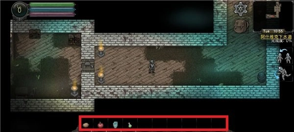 下面是物品栏,能够存放食物和武器,各类食物可以恢复体力。