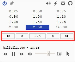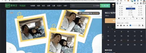 打开视频网站,例如爱奇艺,然后单击插件图标,可以看到0.25~16倍速的菜单框;