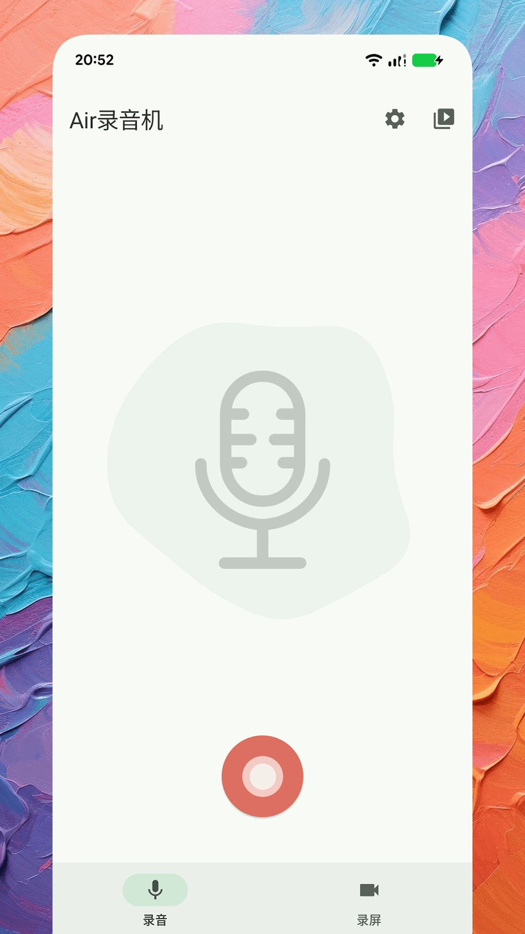1.打开Air录音机App,点击主界面底部的“红色圆形按钮”即可开始录音