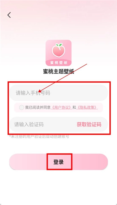 3、在登录页面输入你的手机号码,完成登录后就可以开始使用蜜桃主题壁纸手机版啦。