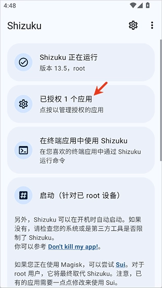 2、Shizuku激活后即可对NPatch进行授权,授权成功后在Shizuku中会显示已授权的应用