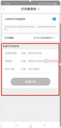 2、打开入库同步打印提货码,连接打印机后,入库则自动打印出对应包裹的提货码,张贴到包裹上即可。