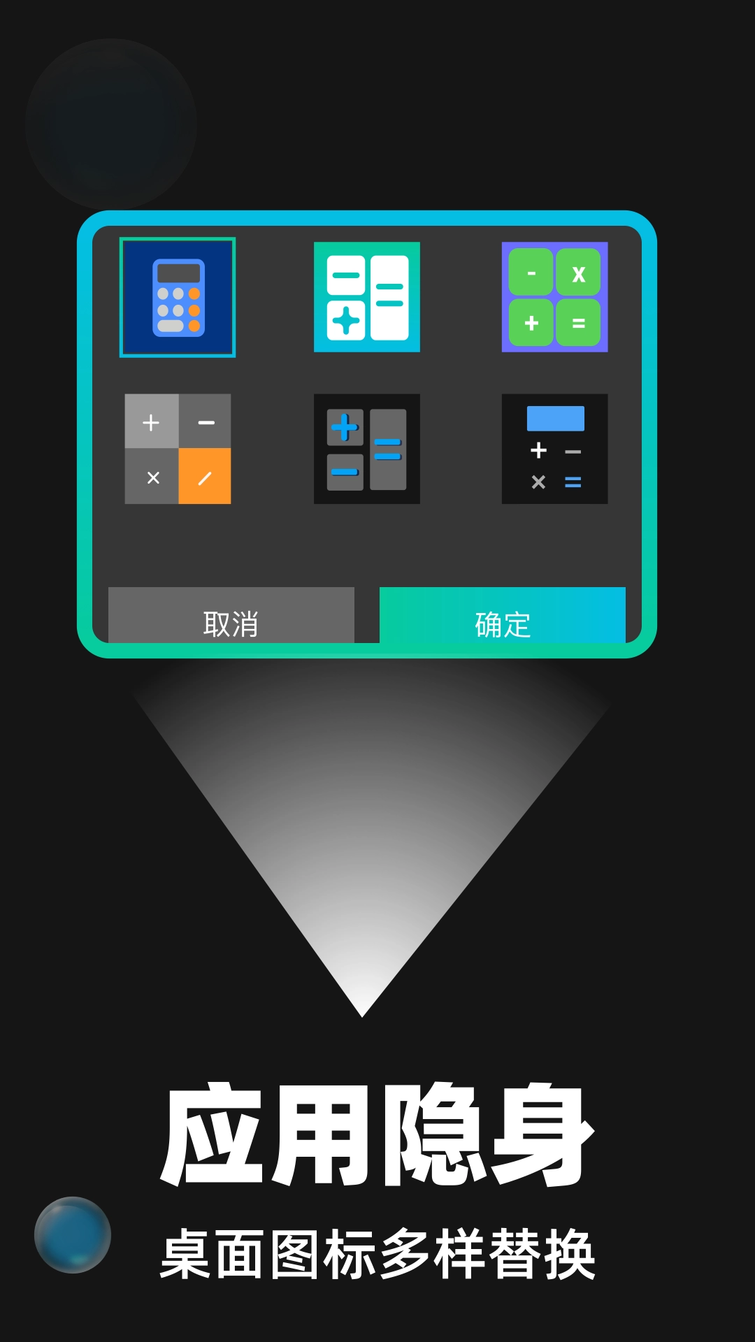 2. 挑选“伪装图标”,比如把App图标换成“计算器”“天气”这类常见应用的图标。