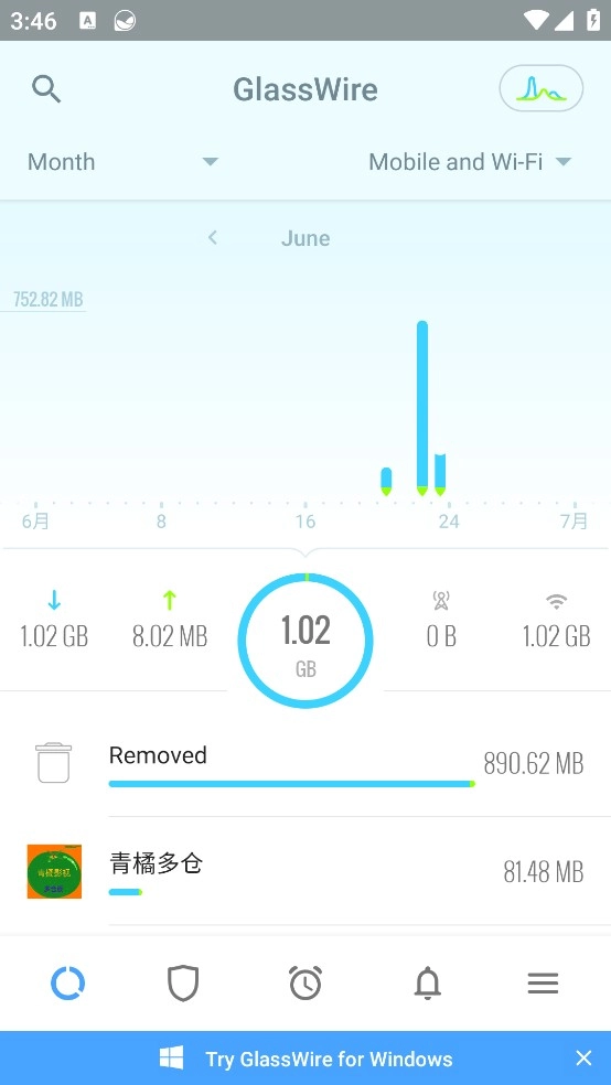 6、借助GlassWire的实时图表,助力保护您的隐私,同时揭示可疑的应用程序活动。