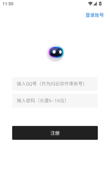 1. 开启闪云软件库App,来到登录界面,若已有账号,直接输入账号进行登录。