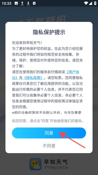 1. 下载并安装完成后,阅读并同意“隐私保护提示”,同时授权访问位置权限。