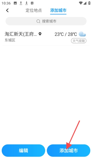 3、打开【添加城市】页面,点击底部【添加城市】按钮。