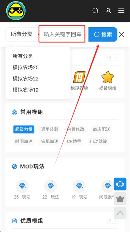 2.点击页面上方的搜索框,输入关键字进行搜索