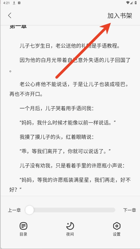 3、在阅读页面,点击【加入书架】即可