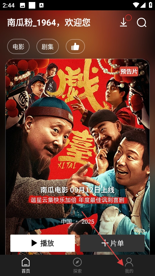 1. 开启南瓜电影,轻点底部导航栏中的“我的”选项。