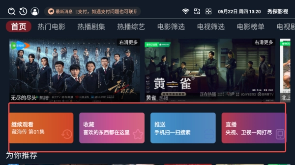 4、热门推荐:每天推荐最新最热门的视频,秀探影视直接点播观看