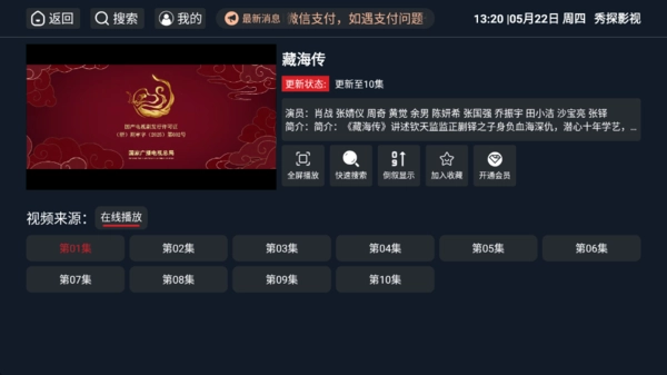 4、秀探影视各种影视剧在这里都能找到,还可以随便看影院大片,都是免费的。