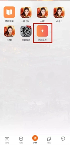 2. 添加应用:进入多开功能页面,点击【+】添加按钮。