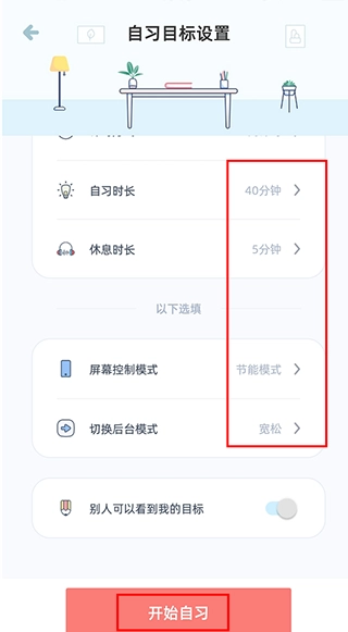 4、设定学习时长,设定完毕后,点击“开始自习”。