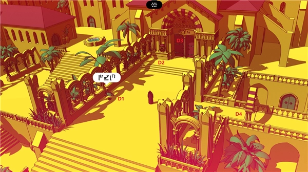 D处连接着传送仪器。左下方是传送界面,当解锁更多传送点后,就能在此进行传送操作。右下方则是达成真结局所必需的翻译关卡,在此关卡中,需要对两边的语言展开翻译。
