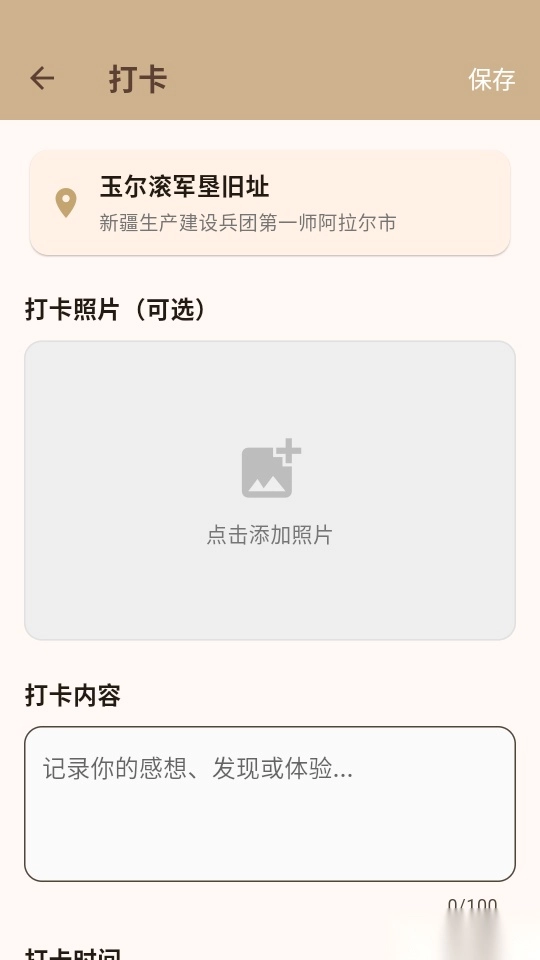 4、这样便能上传打卡照片,录入个人打卡内容,接着点击右上角的“保存”按钮进行实时保存。