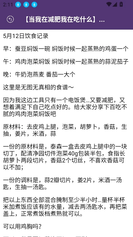3、接下来便能在“减肥养身菜谱”页面里筛选所需菜谱,点击“菜谱内容”进入下一步。