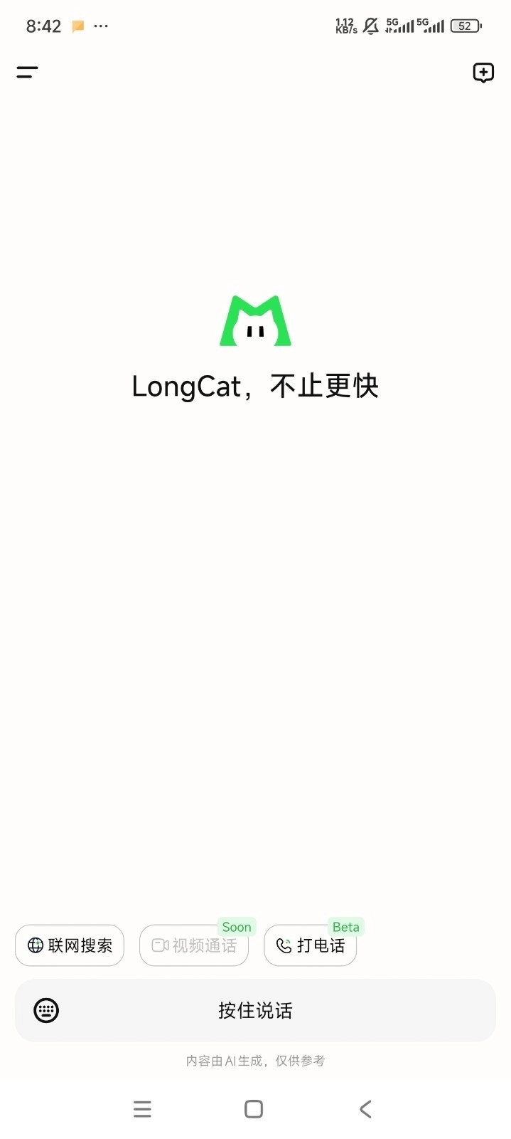 LongCat是一款具备专业AI智能问答及精准互动解答功能服务的应用软件。它搭载极为先进的AI深度思考模型,可满足用户在多场景下的AI深度问答与提问需求,全方位覆盖用户的AI提问解答需求,让用户畅享高质量的AI智能联网问答与探索。该软件的AI算法系统尤为先进强大,能满足全场景的AI智能问答需求,助力大家迅速解决各类难题。不仅如此,LongCat最新版本还具备出色的语音对话互动功能,用户能轻松与AI进行语音面对面交流。对这类程序应用感兴趣的小伙伴们可别错过,欢迎来本站体验使用。