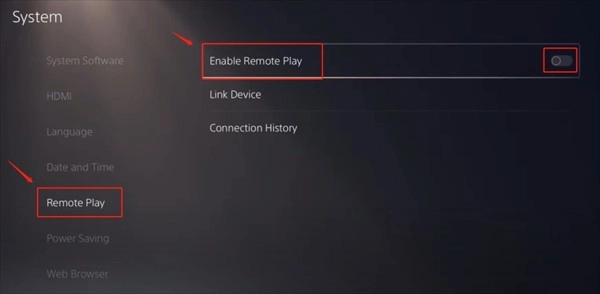 在你的PS4或者PS5设备上,按顺序依次进入“设置”,接着进入“系统”,最后进入“远程播放”。