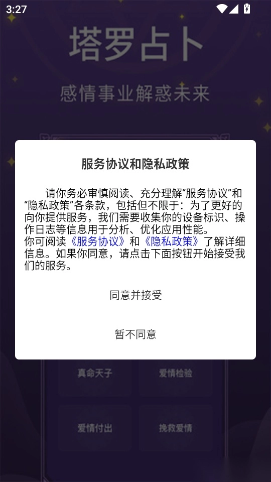 1. 第一步,打开软件,阅读协议与隐私政策,随后点击“同意并接受”按钮进入。