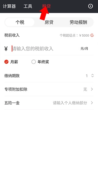 3、若要计算房贷个税、劳动报酬等,可点击导航栏中的“税贷”进行计算。