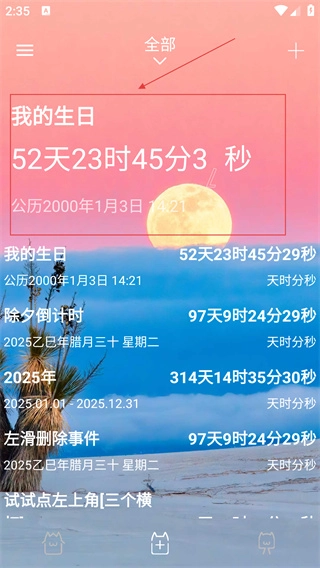 4、设置完成后,在主界面能够看到创建的【我的生日】倒计时,上面会展示剩余时间等相关信息。