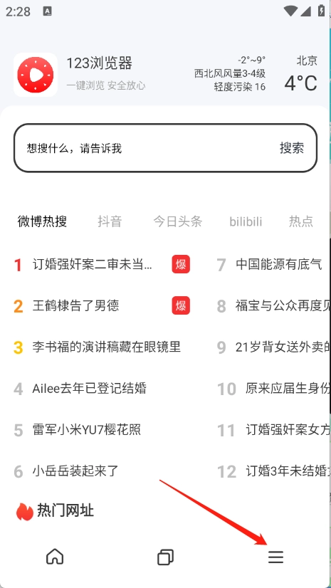 123浏览器,一款全新的手机浏览器。它支持百度、必应、搜狗等搜索引擎随意切换,搜索速度快捷,内容全面丰富,无论是头条资讯、学习资料,还是影视资源等都能搜索。其界面设计简洁清晰,导航直观易懂,用户能轻松找到所需内容或服务,有效提升上网效率。