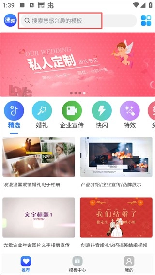 1. 开启捷映视频制作App,进入主页后,您会看到各式各样丰富的模板。既能够直接浏览这些模板,也可以借助搜索栏,查找自己感兴趣的模板。