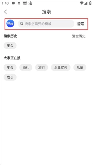2. 在搜索框中输入您所需的主题关键词,例如【年会】。