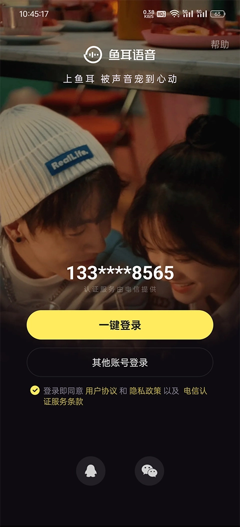1、在本站下载安装鱼耳并打开,进入软件后,用户无需注册,可选择通过微信或QQ登录。
