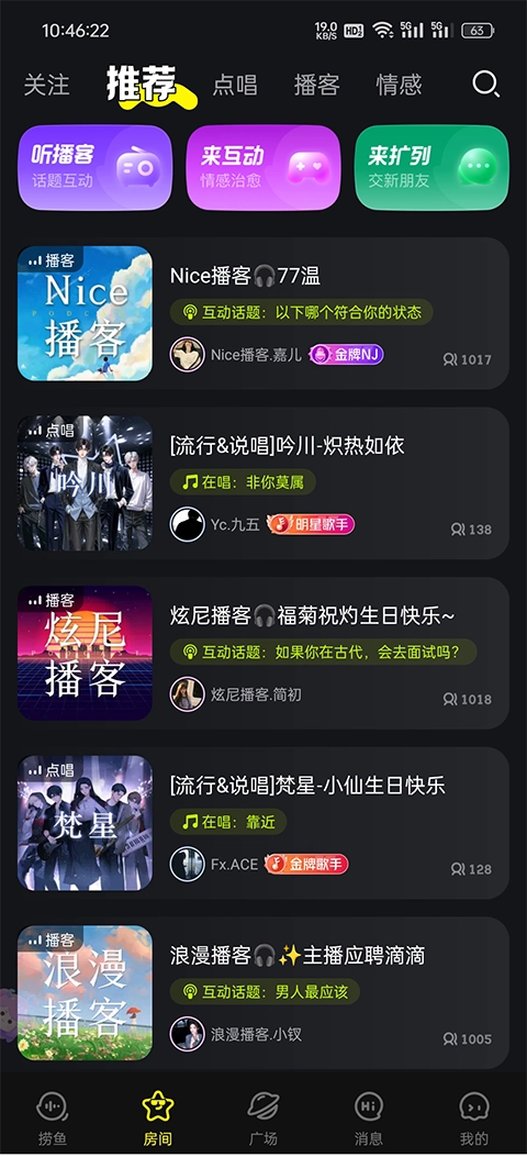 24 小时不间断,海量优质歌手现场开唱,简直 YYDS!在这里,你能感受到如同身处 livehouse 的超强临场感。心选歌手随时待命,即点即唱,为你带来完美体验。他们凭借实力唱功,绝对能震撼你的小伙伴一整年!