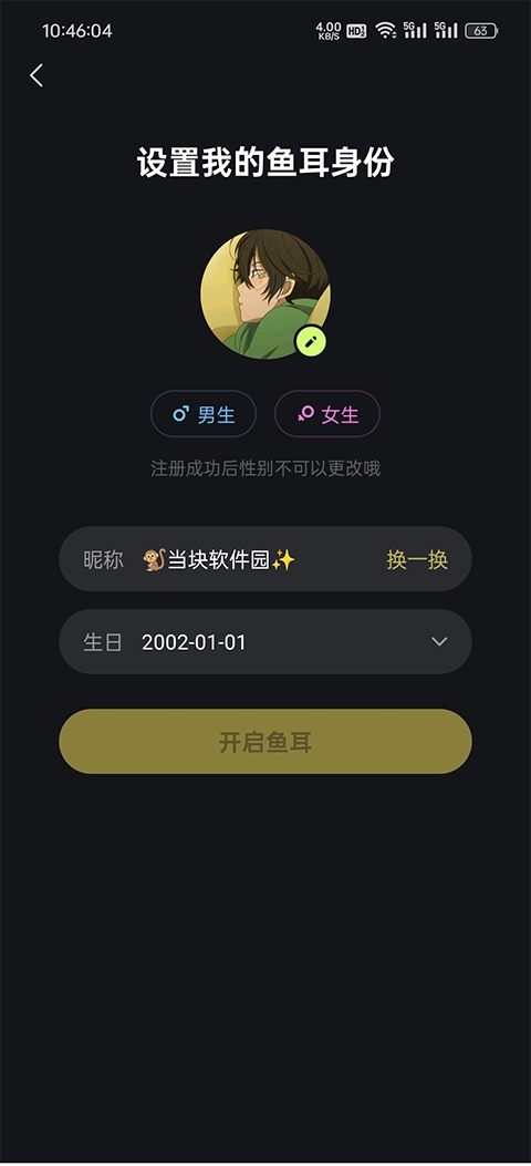 2、随后,用户能够对自身身份相关的基本信息进行设置,其中涵盖性别、昵称以及生日等。