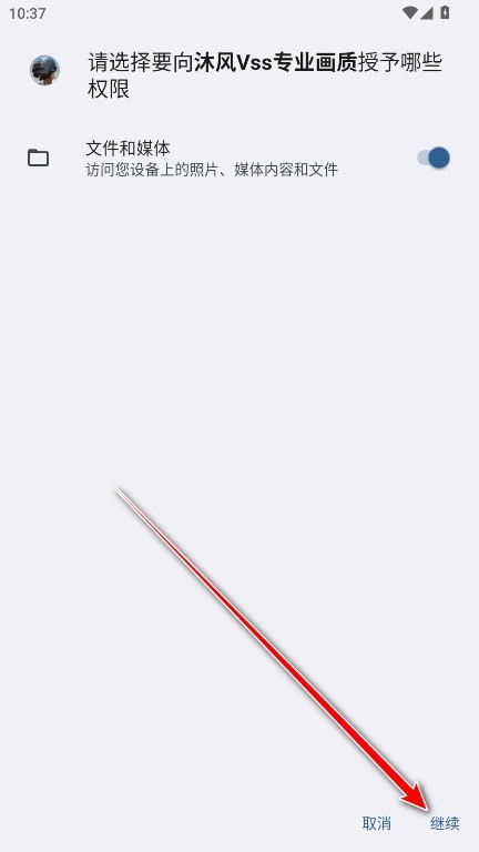 1. 开启沐风Vss专业画质,轻点右下角的“继续”。