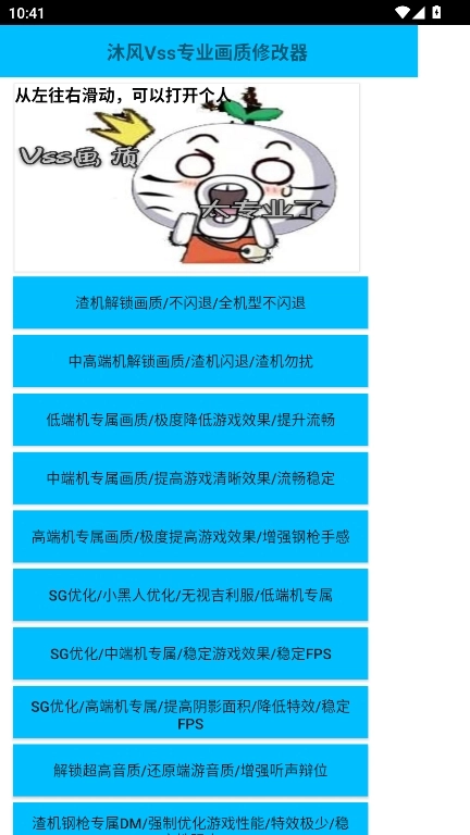沐风Vss专业画质,这款游戏辅助备受关注。它不仅提供专属,还有免费的辅助功能。程序操作十分简易,还自带悬浮窗口。这里有多种画质可供甄选,安全又稳定,快来体验不同画质选择带来的乐趣吧!