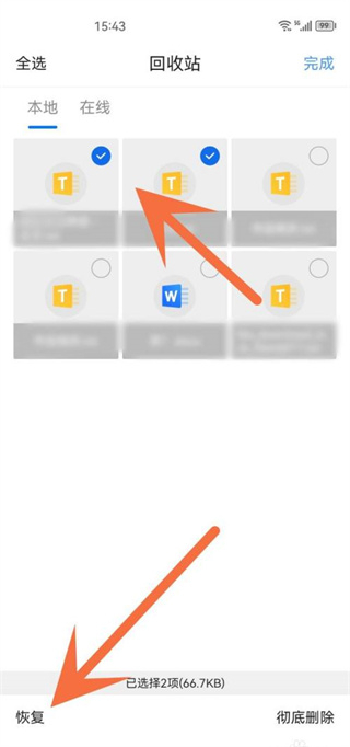 4、最后勾选所需恢复的文件,然后点击左下角的【恢复】按钮即可。
