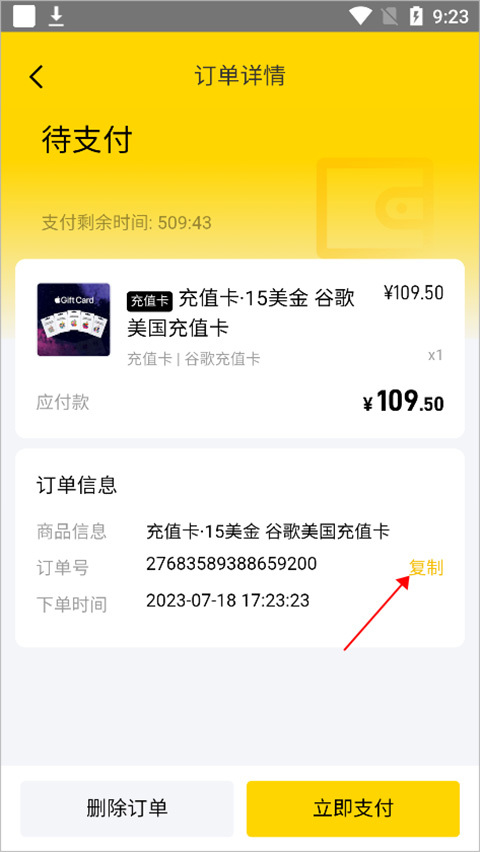 3、您也可以直接在页面上复制订单ID号,发送给客服,客服就会为您办理微信支付。