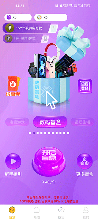 2、打开软件就能轻松的抽取盲盒商品,所包含的商品种类丰富,享受更多的折扣。