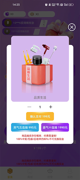 1、你所有的想要购买的商品这里都有的,都会通过抽取盲盒来下单的。