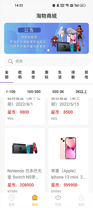 3、基本上各种商品都有,而且还支持盲盒回收,真的好玩。