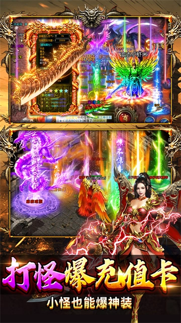 2、首爆首杀奖励丰富,杀怪福利多多,玩法非常多,上百种BOSS,神装,天赋。