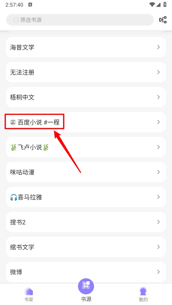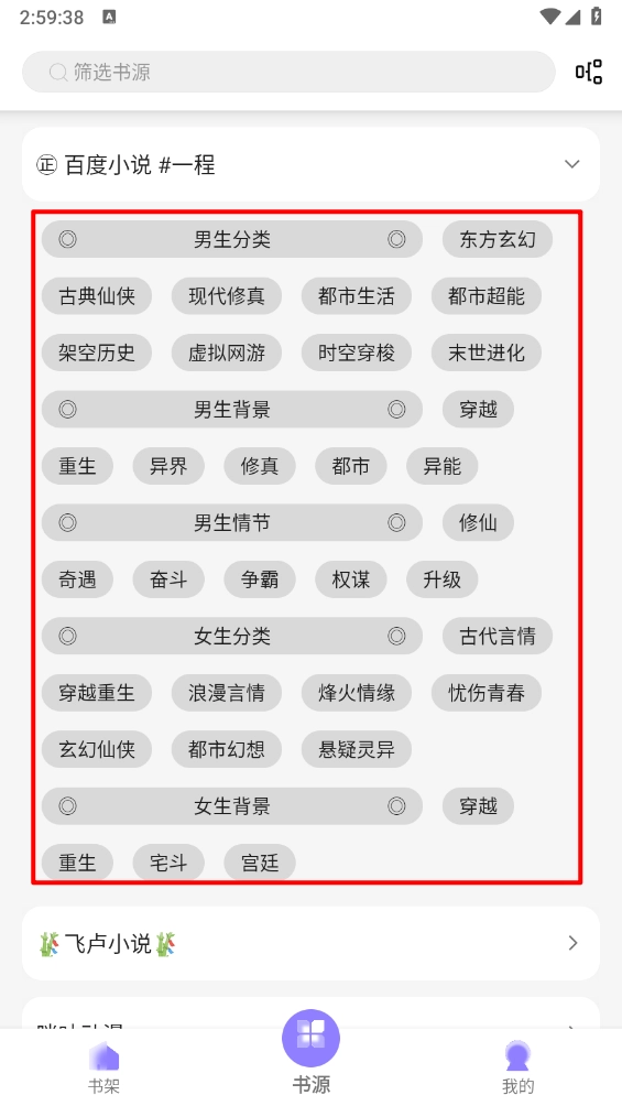 2、进入书源板块,选择所需的书源一键进入。