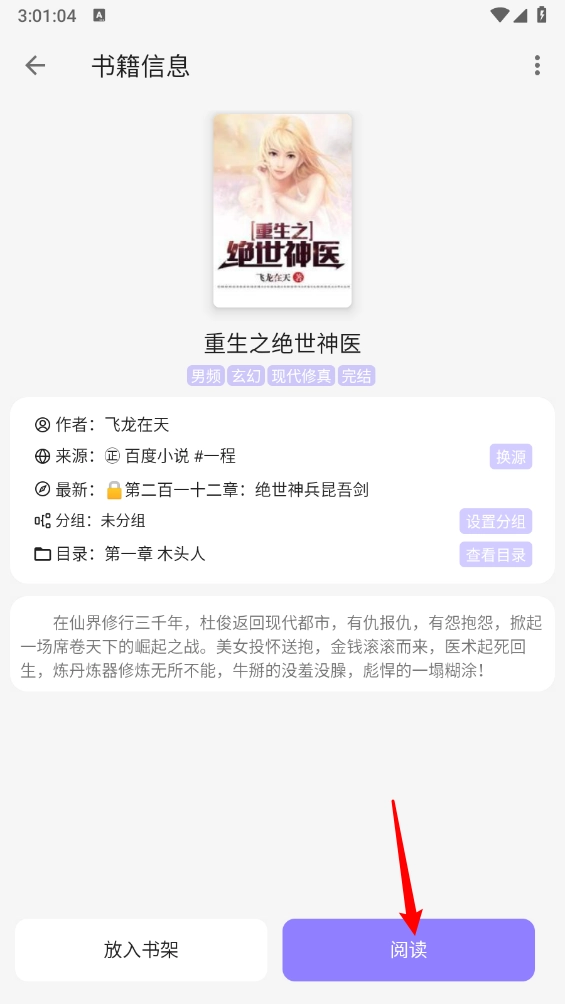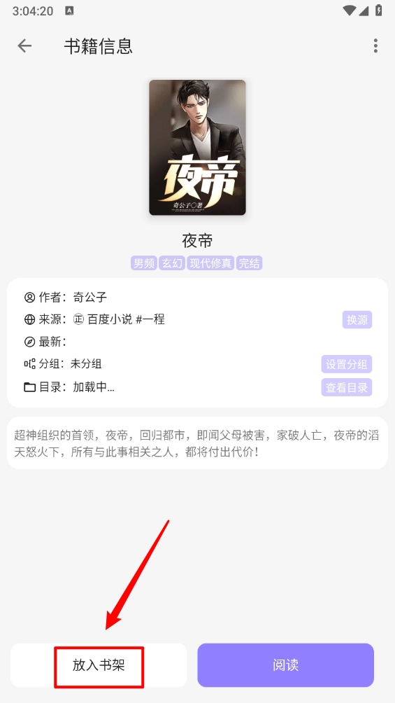 2、然后进入小说详情页点击"放入书架"。