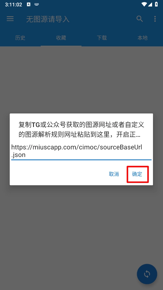 2、进入主页输入图源地址,点击"确定"。