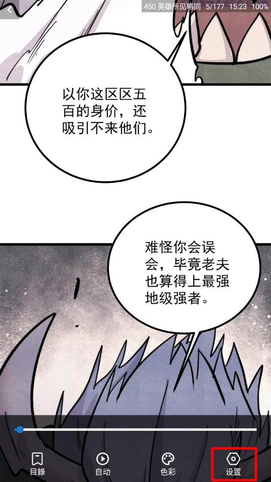 1、启动软件后进入漫画阅读界面,轻点界面中间区域即可调出菜单。
