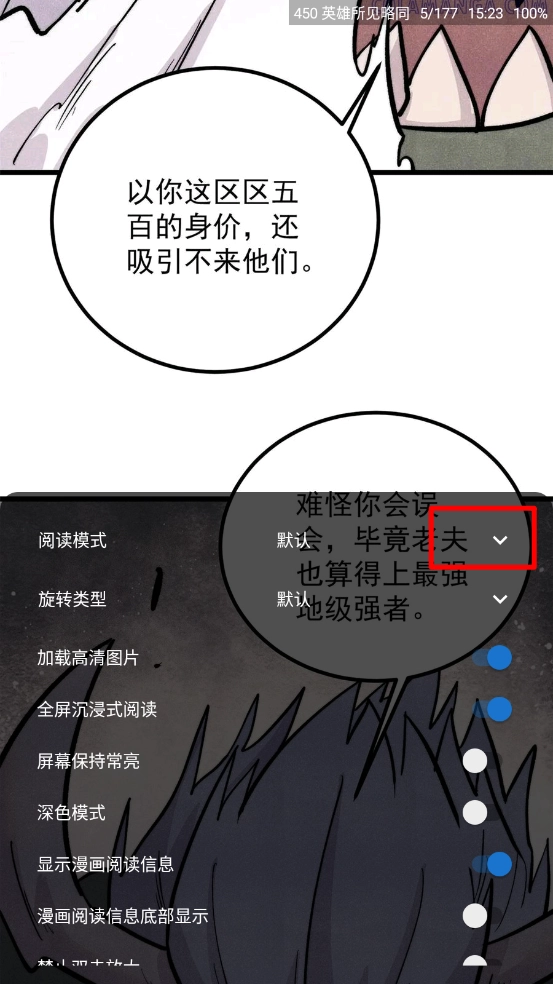 5、在漫画阅读详情页,选择相应的会话进入。